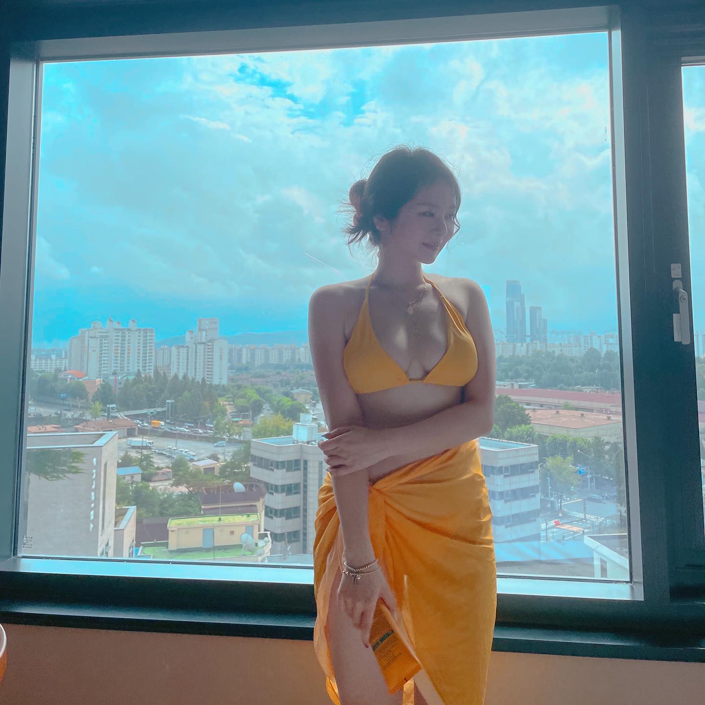 1,614 Likes, 75 Comments - Uoo💋 (@pinupgirl_yj) on Instagram: "💙💛썬크림바르다말고사진찍기💛💙"