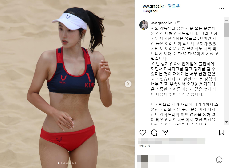 항저우 아시안게임 신지은 비치발리볼 국가대표 선수 비키니 몸매 노출 사진 셀카 인스타그램