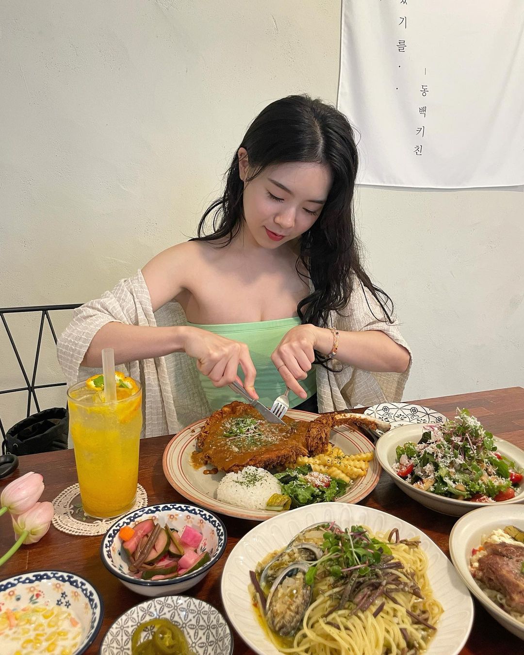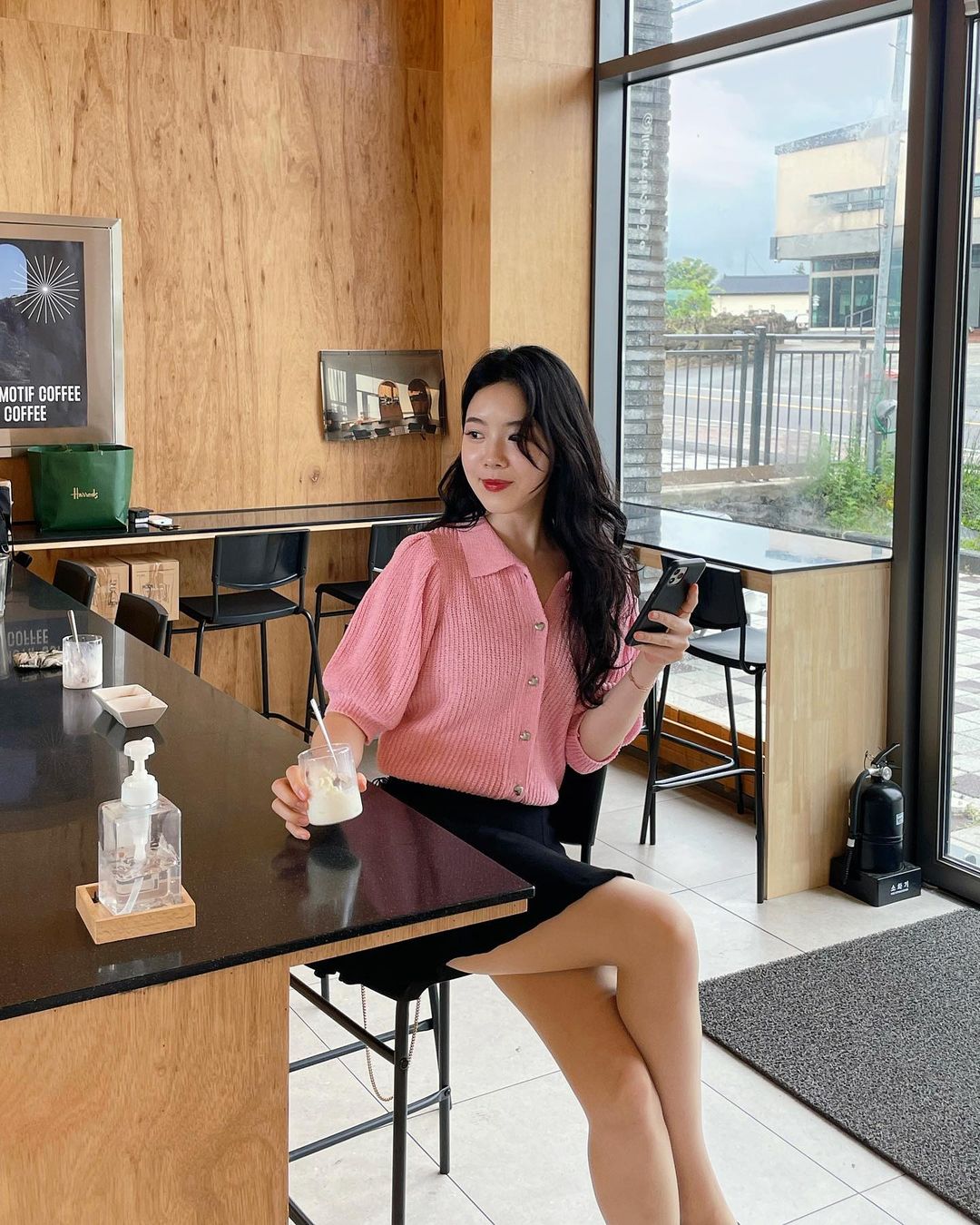 오프숄더에 손이 자주 가더라고요.🙂