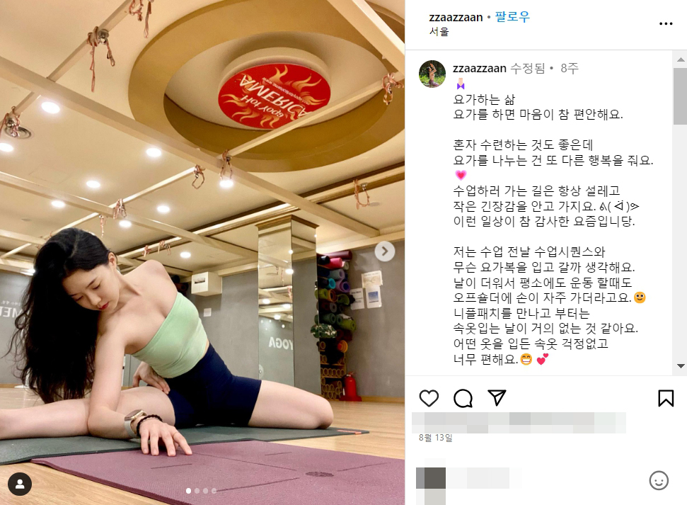 무슨 요가복을 입고 갈까 생각해요.