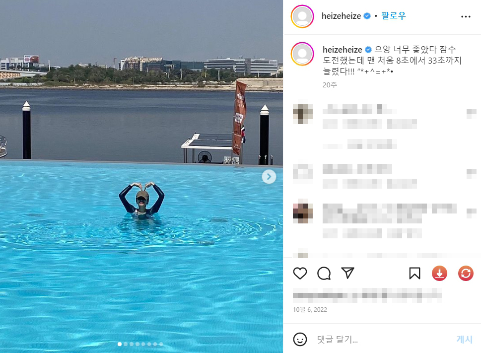 Instagram의 헤이즈 다혜님 : "으앙 너무 좋았다 잠수 도전했는데 맨 처움 8초에서 33초까