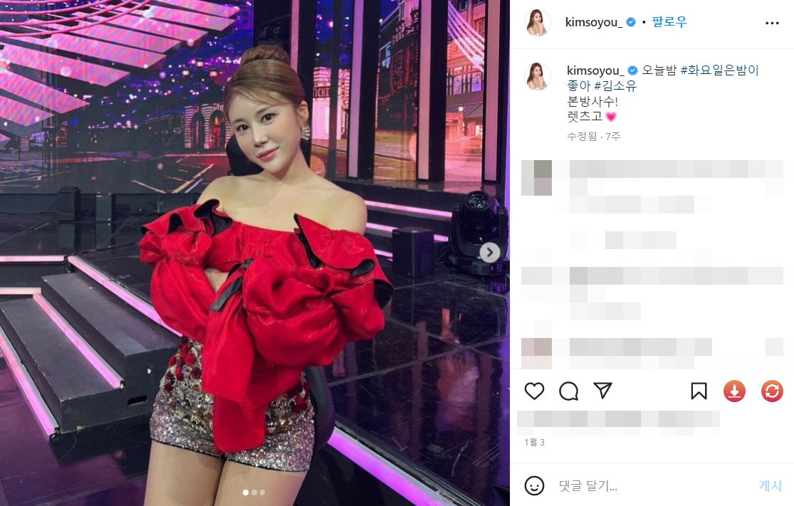 Instagram의 김소유님 : "오늘밤 #화요일은밤이좋아 #김소유 본방사수! 렛츠고💗"