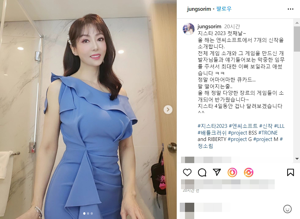 지스타 2023 엔씨 정소림 게임 캐스터 몸매 실물 나이 키 로아 ai 레전드 나무위키 인스타그램
