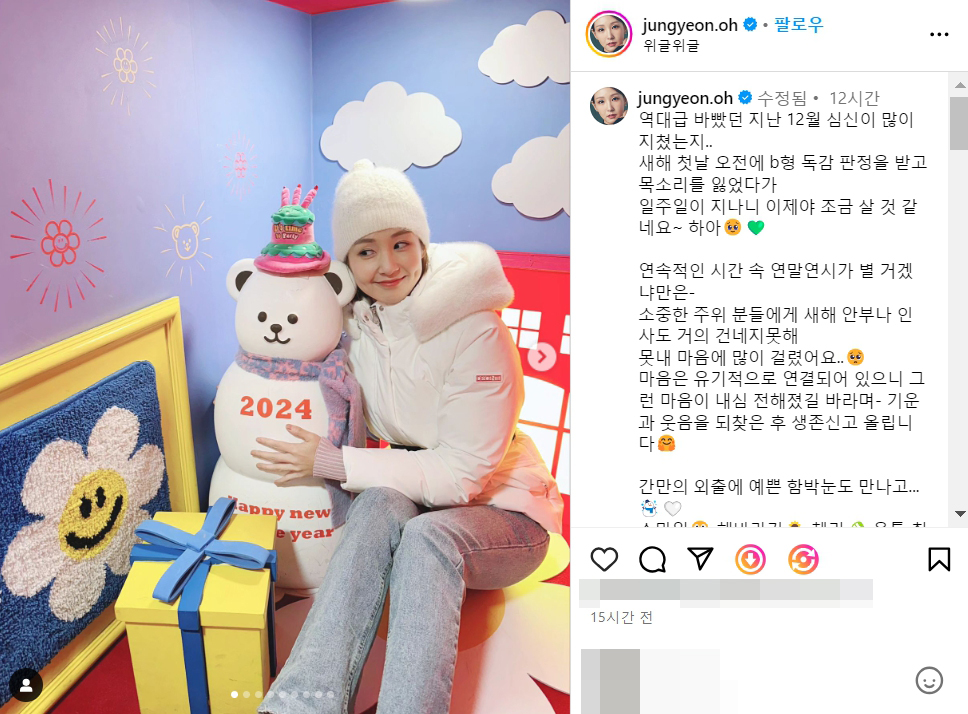 새해 첫날 오전에 b형 독감 판정을 받고 목소리를 잃었다가