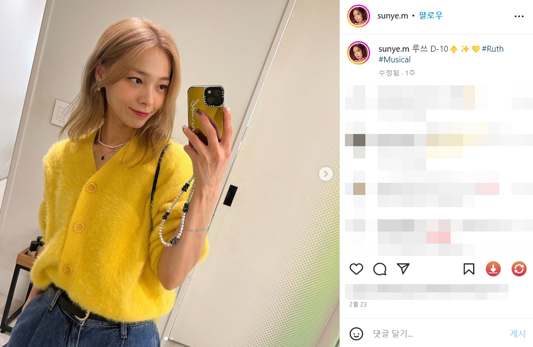 원더걸스 선예 이사 한국 뮤지컬배우 루쓰 몸매 사진 셀카 니트 나무위키 인스타