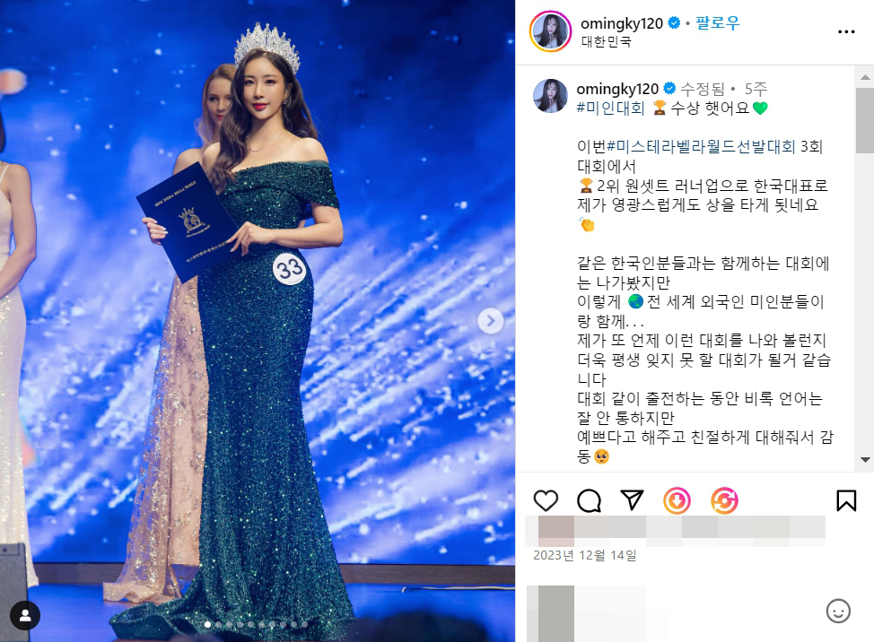 미인대회 🏆수상 햇어요💚