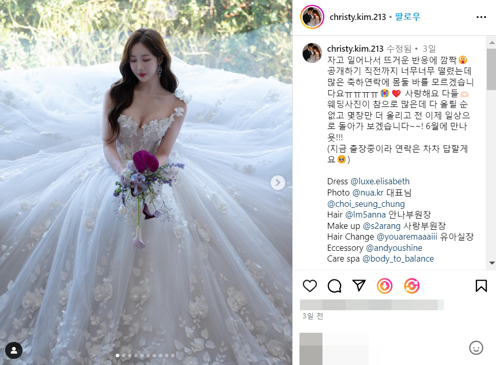 mc 김유수 아나운서 의상 결혼 웨딩 드레스 몸매 일상 사진 셀카 각선미 미녀 방송인 인스타그램