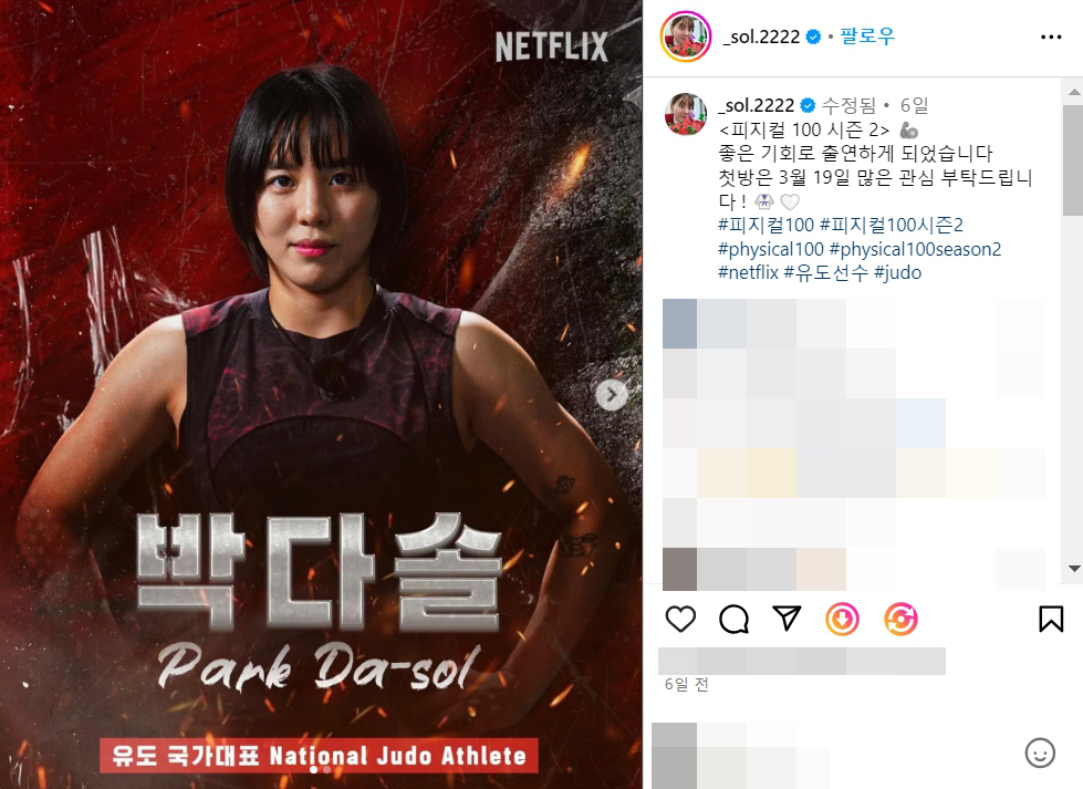 피지컬100 시즌2 유도 국가대표 박다솔 몸매 사진 셀카 셀피 96년생 나이 나무위키 인스타그램