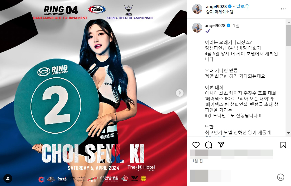 링 챔피언십 대회 레이싱걸 모델 최슬기 링걸 몸매 사진 셀카 인스타