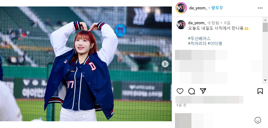 두산베어스 2024 치어리더 이다영 직캠 몸매 댄스 95년생 인스타