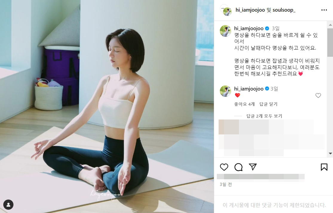 명상을 하다보면 잡념과 생각이 비워지면서 마음이 고요해지다보니, 여러분도 한번씩 해보시길 추천드려요💓