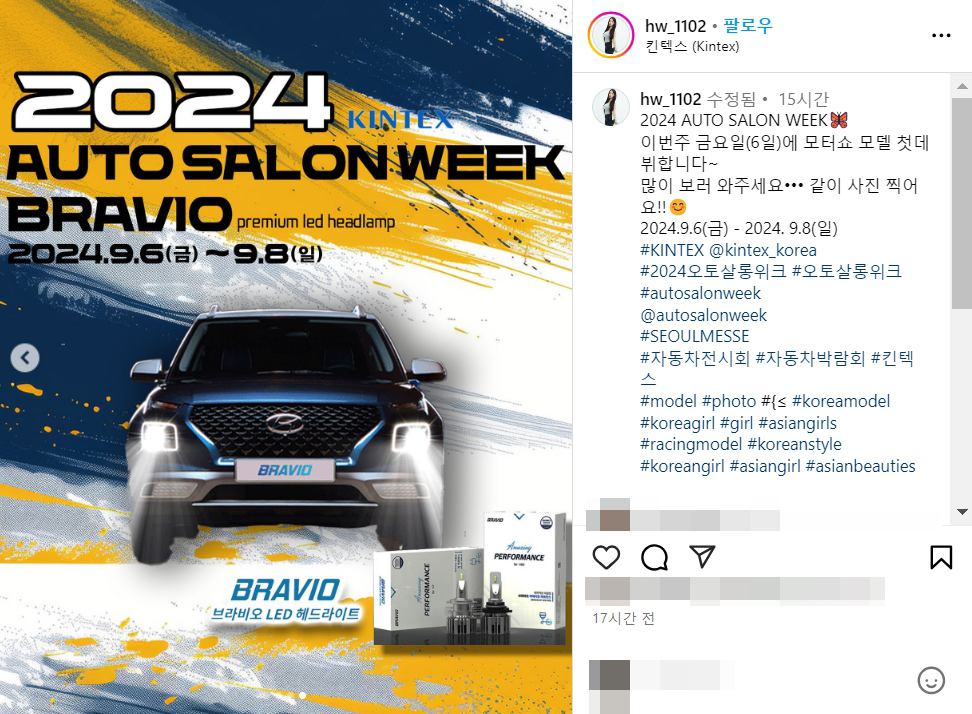 2024 오토살롱위크 일산 킨텍스 모터쇼 모델 이희원 데뷔 인스타
