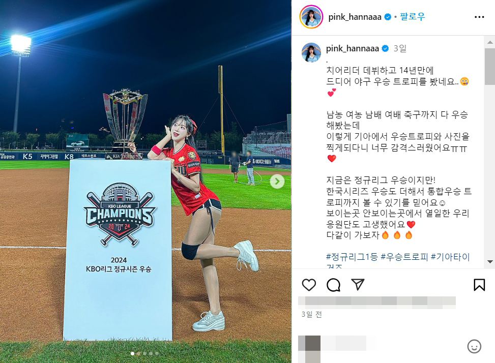 이렇게 기아에서 우승트로피와 사진을 찍게되다니 너무 감격스러웠어요ㅠㅠ❤️