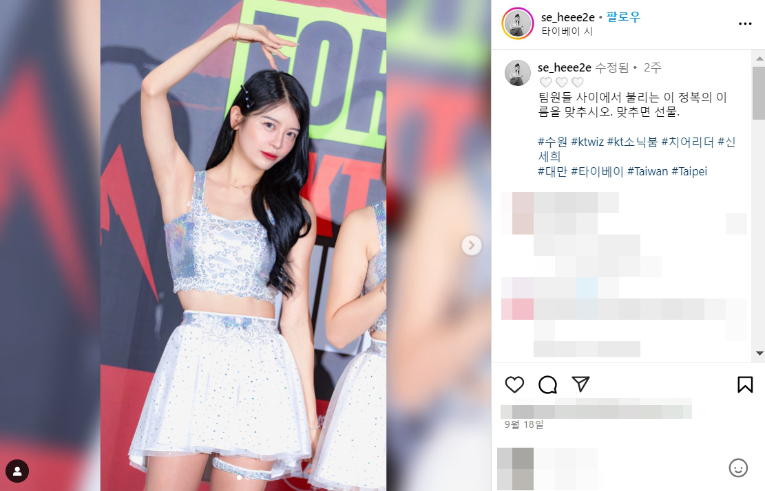 kt 위즈 소닉붐 신세희 치어리더 비키니 몸매 97년생 프로필 인스타