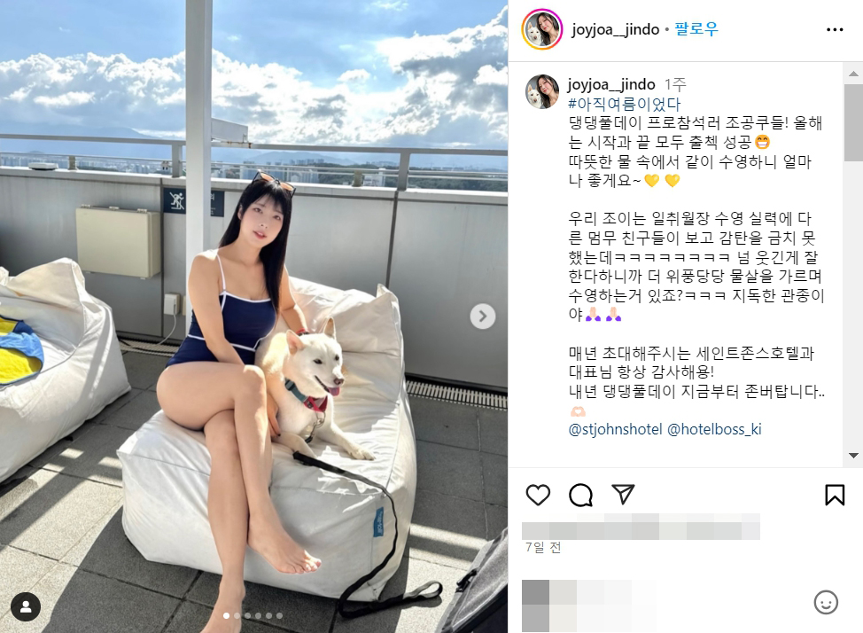 우리 조이는 일취월장 수영 실력에 다른 멈무 친구들이 보고 감탄을 금치 못했는데ㅋㅋㅋㅋㅋㅋㅋㅋ 넘 웃긴게 잘한다하니까 더 위풍당당 물살을 가르며 수영하는거 있죠?ㅋㅋㅋ 지독한 관종이야🙏🏻🙏🏻
