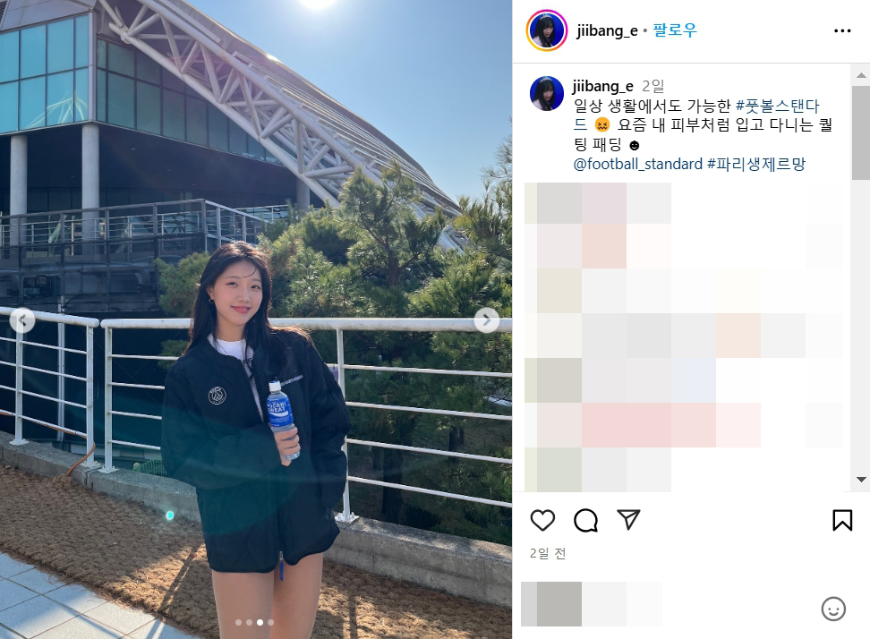 일상 생활에서도 가능한 풋볼스탠다드 😖 요즘 내 피부처럼 입고 다니는 퀄팅 패딩 ☻ 파리생제르망