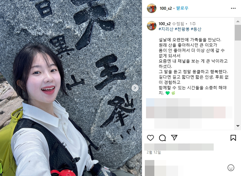 지리산 등산녀 백만송희 결혼 몸매 인스타