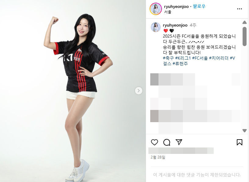 FC서울 2025 치어리더 류현주 직캠 인스타