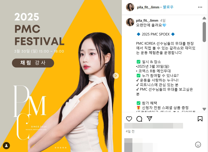 2025 SPOEX 스포엑스 채림 강사 인스타