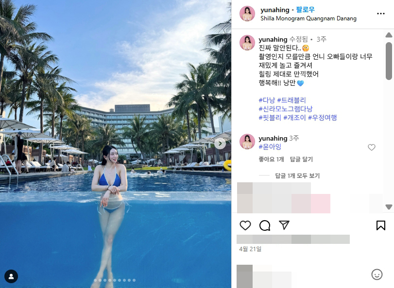트래블리 다낭 조윤아 비키니 레깅스 글래머 몸매 인스타