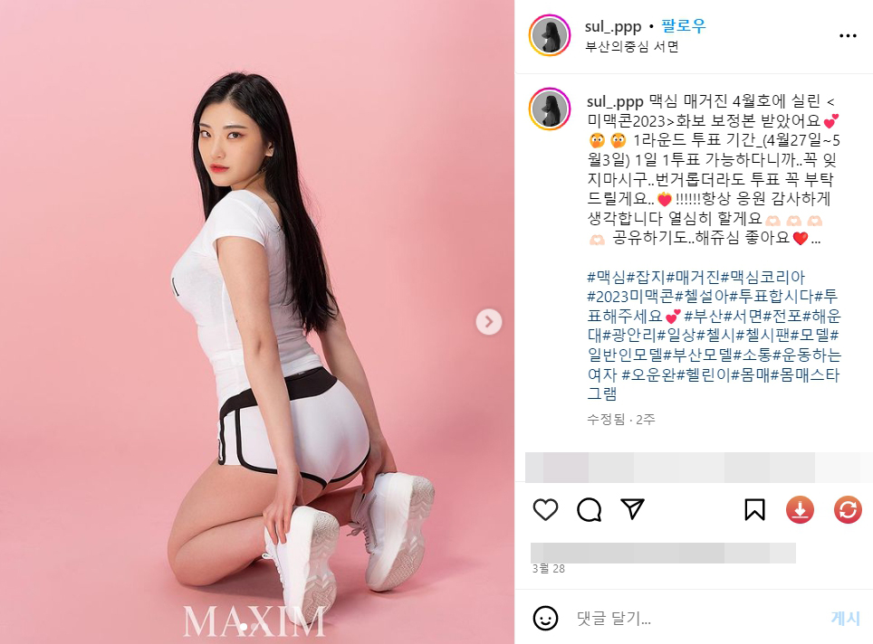 Instagram의 첼설아🖤🌷💗님 : "맥심 매거진 4월호에 실린 <미맥콘2023>화보 보정본 받았어요💕🫢
