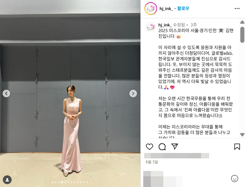 미스코리아 2025 서울 경기 인천 미 김현진 인스타