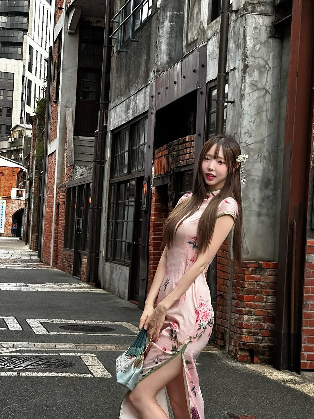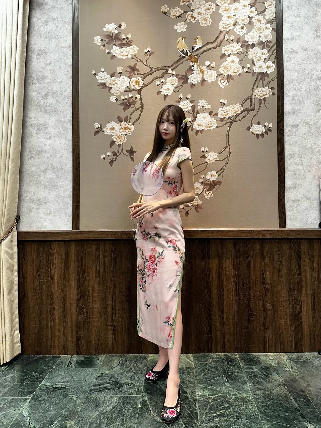 레이싱걸 모델 연두 치파오 다리 각선미 사진 셀카 인스타