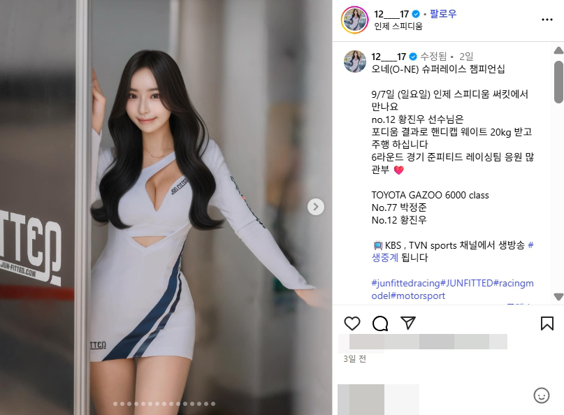 | 2025 AMF 갈라쇼 레이싱걸 진하진 몸매 각선미 인스타 (0) | 2025.09.10 |