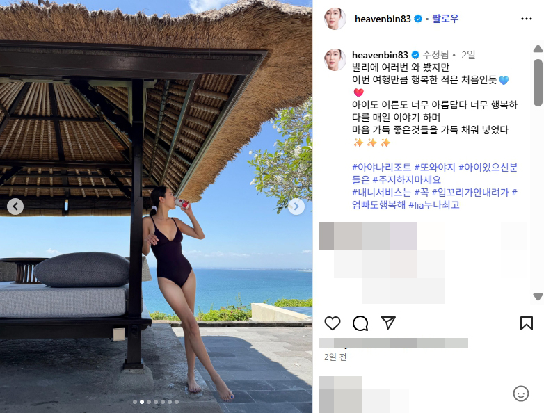 전혜빈 발리 리조트 미시룩 수영복 몸매 다리 각선미 인스타