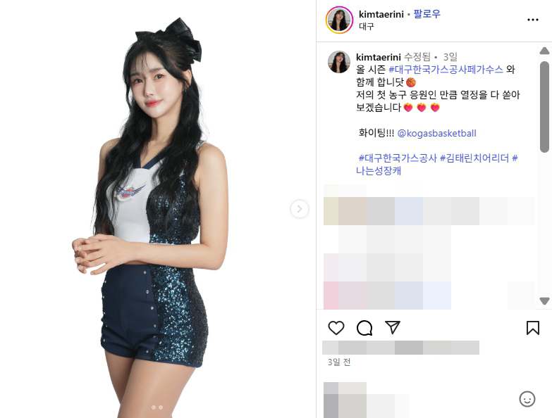 대구 한국가스공사 페가수스 2025 치어리더 김태린 인스타