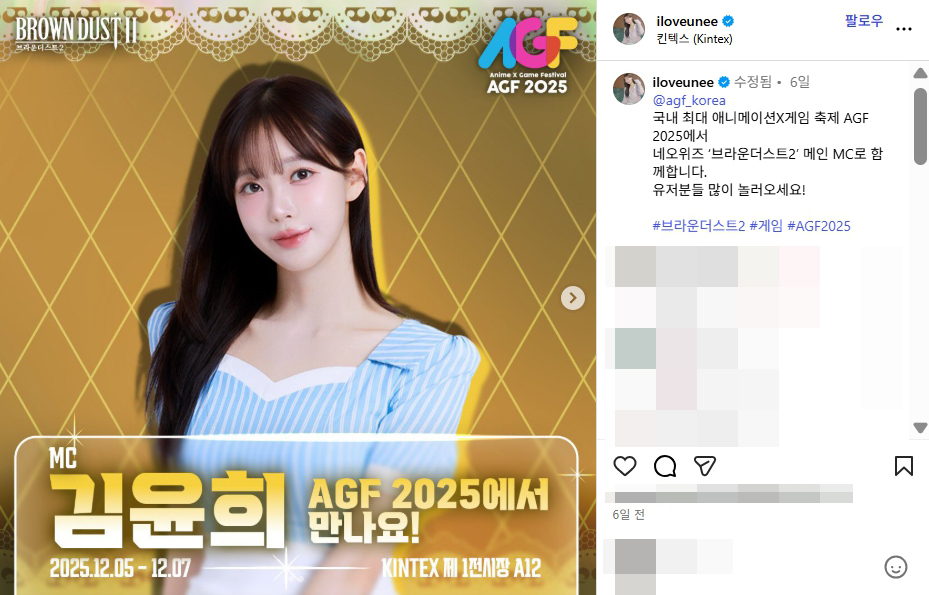 AGF 2025 브라운더스트2 MC 아나운서 김윤희 검스 인스타