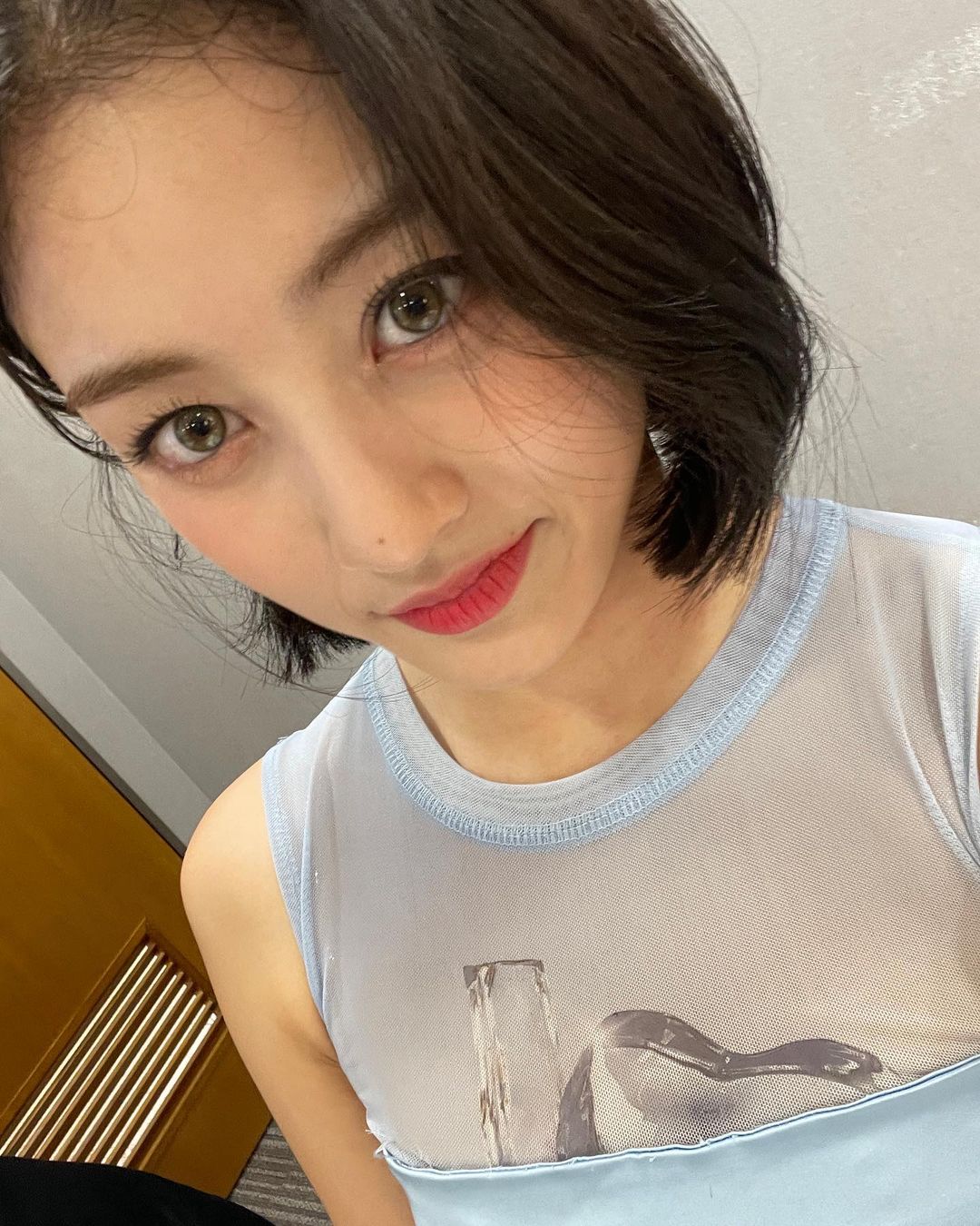 트와이스 지효 단발 살 몸매 사진 셀카 글래머 아이돌 노출 드레스 원피스 패션 인스타