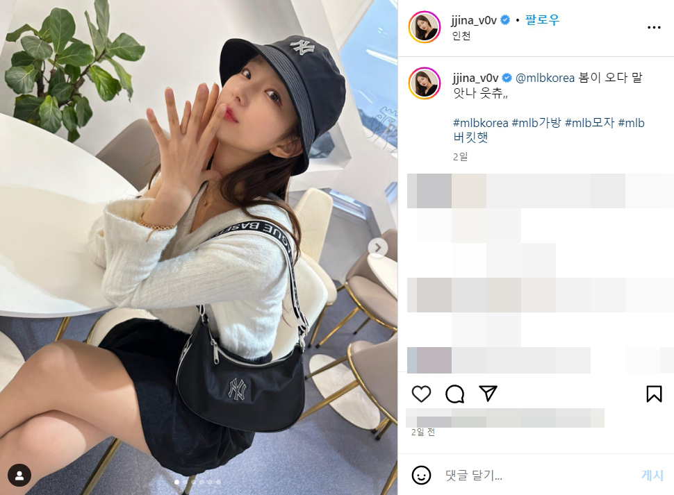 Instagram의 김진아님 : "@mlbkorea 봄이 오다 말앗나 읏츄,, #mlbkorea #mlb가방 #mlb모자 #mlb버