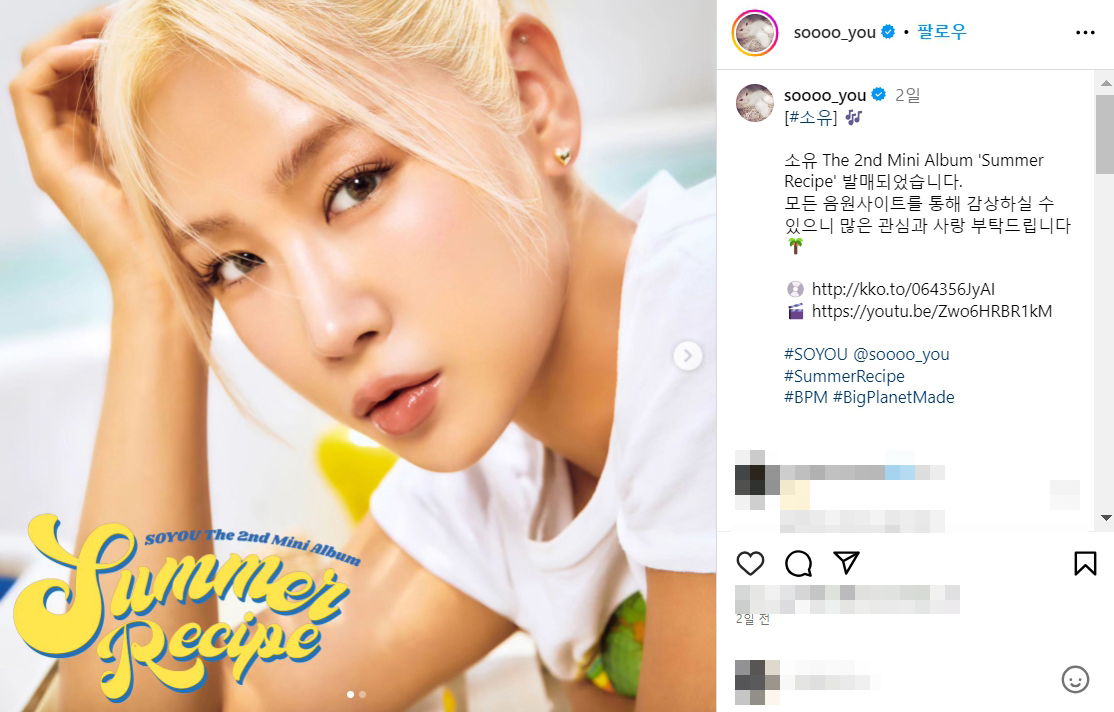 소유 The 2nd Mini Album 'Summer Recipe' 발매되었습니다.
