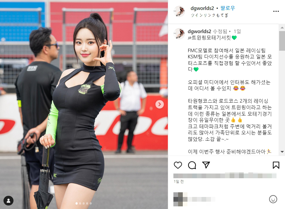 FMC모델로 참여해서 일본 레이싱팀 KSM팀 다이치선수를 응원하고 일본 모터스포츠를 직접경험 할 수있어서 좋았다💚
