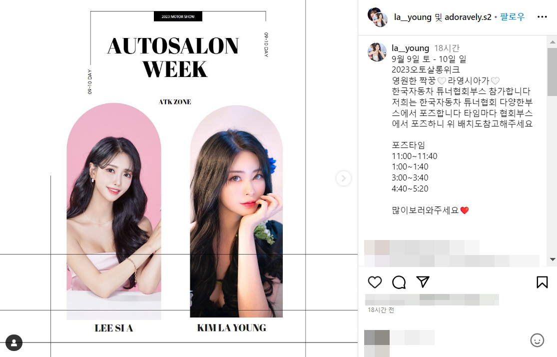오토살롱위크2023 모델 이시아 몸매 사진 셀카 노출 촬영 킨텍스 모터쇼 행사 인스타그램