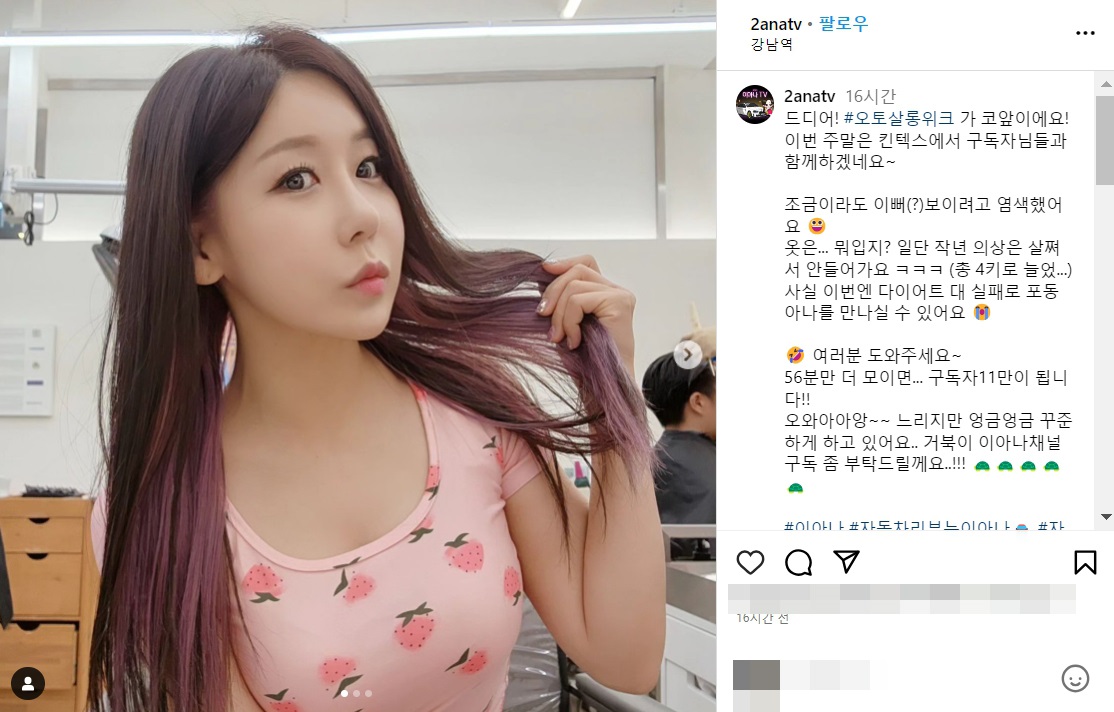 오토살롱위크 2023 자동차 유튜버 이아나tv 이슬비 아나운서 노출 몸매 셀카 사진 인스타그램