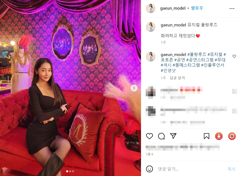 이가은 Gaeun Lee (@gaeun_model) on Instagram: "뮤지컬 물랑루즈 화려하고 재밌었다❤️"