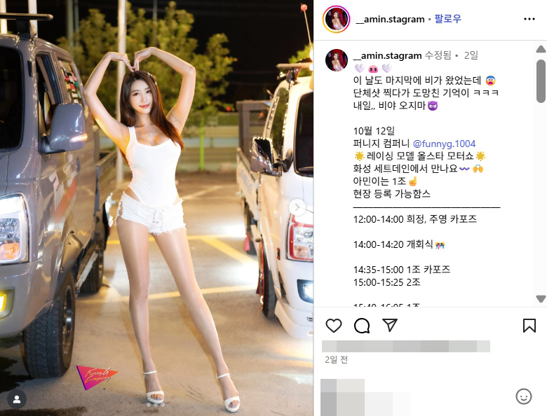 레이싱모델 올스타 모터쇼 2025 이아민 다리 각선미 인스타