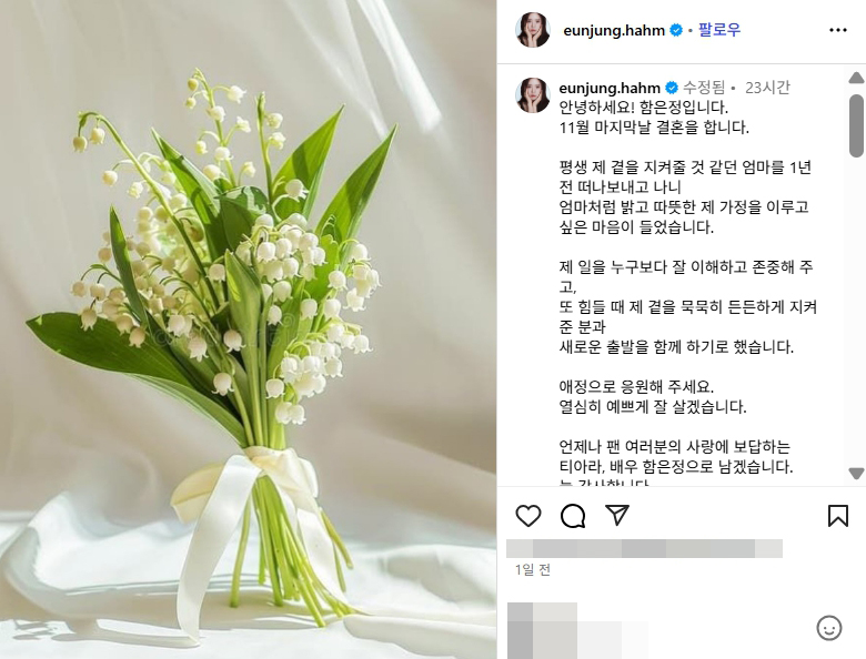 엄마처럼 밝고 따뜻한 제 가정을 이루고 싶은 마음이 들었습니다.