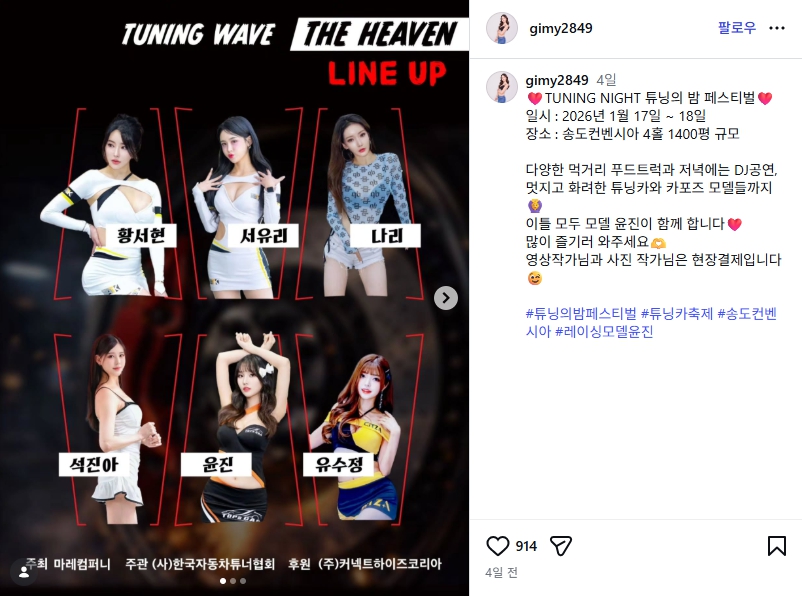 2026 튜닝의 밤 페스티벌 송도 축제 레이싱걸 윤진 몸매 인스타